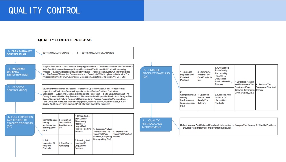 Amostragem final de controle de qualidade: inspeções de amostragem de saída, tratamento de anormalidades, análise de causa raiz e melhoria contínua.