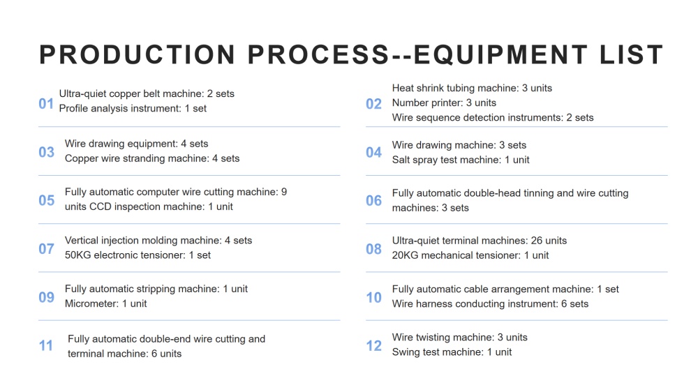 Essa robusta capacidade de produção nos permite entregar chicotes de fios de alto volume e alta qualidade com desempenho estável.